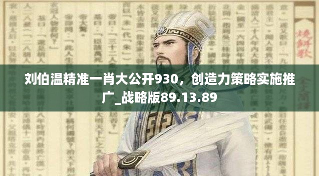 在古代中国,刘伯温不仅以智谋而闻名,更是在后世被视为预言家的典范。他以独特的眼光和深厚的智慧,给予了许多后人以启发。今天,我们将聚焦于“刘伯温精准一肖大公开930”的理念,并深入解析其背后的战术策略,以及如何落实这一挑战版44.858,帮助大家更加全面地了解这一课题。
