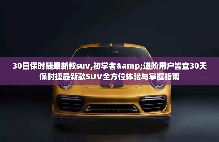 对于追求极致生活品质的车迷而言,拥有一辆保时捷最新款SUV无疑是一种极致的享受,本全方位体验与掌握指南将带您深入了解如何在这短短的30天内,从初步了解保时捷最新款SUV的各项特性,到深入体验并掌握其各项功能,无论您是初学者还是资深车友,本指南都将为您详细解析每一个步骤。