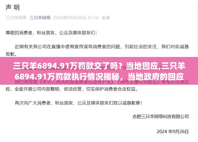 不久前,“三只羊”因涉及某种违规行为,被相关部门处以巨额罚款,这一消息迅速传播,引发了社会各界的热议,这6894.91万的罚款是否已交纳?执行情况如何?我们将一起探讨这些问题。