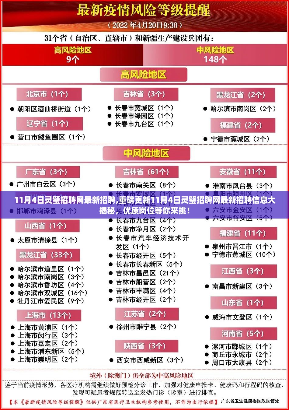 亲爱的朋友们,你们好!我要给大家带来一则好消息——11月4日灵璧招聘网最新招聘信息已经火热出炉啦!你可以找到心仪的工作,实现自己的职业梦想,请让我为大家详细介绍一下这些招聘信息。