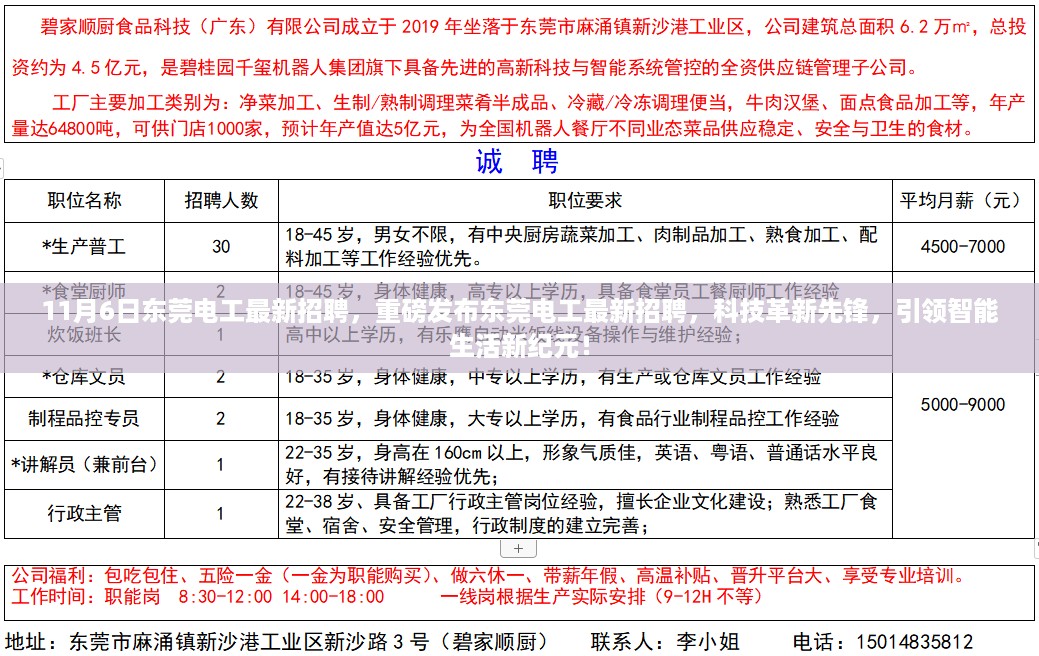 11月6日,东莞电工最新招聘带你领略科技的力量,感受智能生活的魅力,让我们共同见证这一历史时刻,共同创造美好的未来!