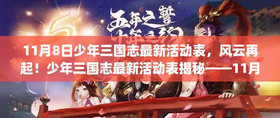 随着秋风渐紧,时光如流水般悄然前行,少年三国志的世界再次掀起波澜,11月8日,这个充满传奇色彩的日子,迎来了一场全新的活动盛宴,让我们一同回顾这场活动的背景、重要事件、深远影响以及在特定领域或时代中的显赫地位。