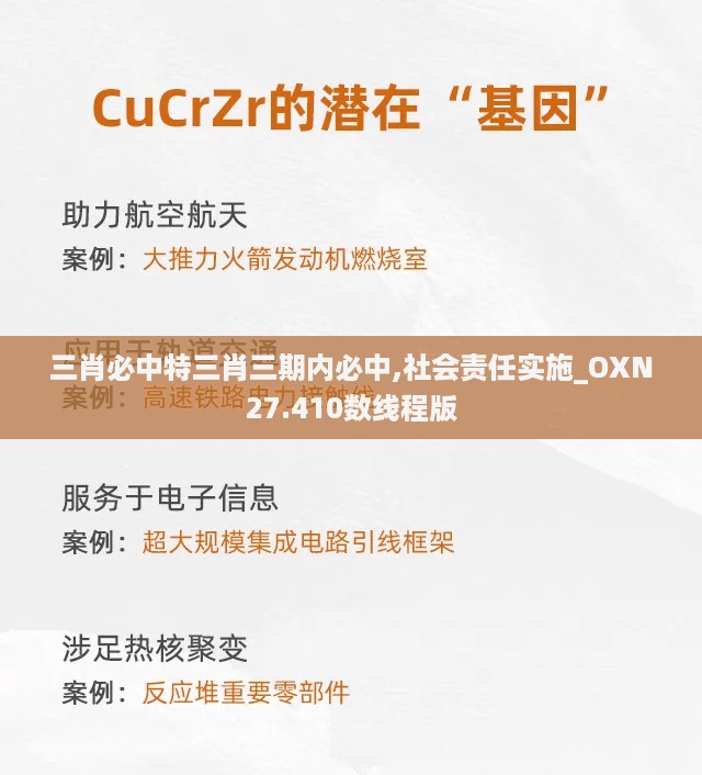 在当前快速发展的社会经济环境中,如何在各类竞争中脱颖而出,成为众多企业和个人所关注的焦点。对于广大投资者和参与者来说,掌握有效的方法、工具和策略尤为重要。本文将围绕“三肖必中特”、“三肖三期内必中”这一主题,探讨如何在社会责任实施方面取得卓越成效,同时了解OXN27.410数线程版的相关应用。