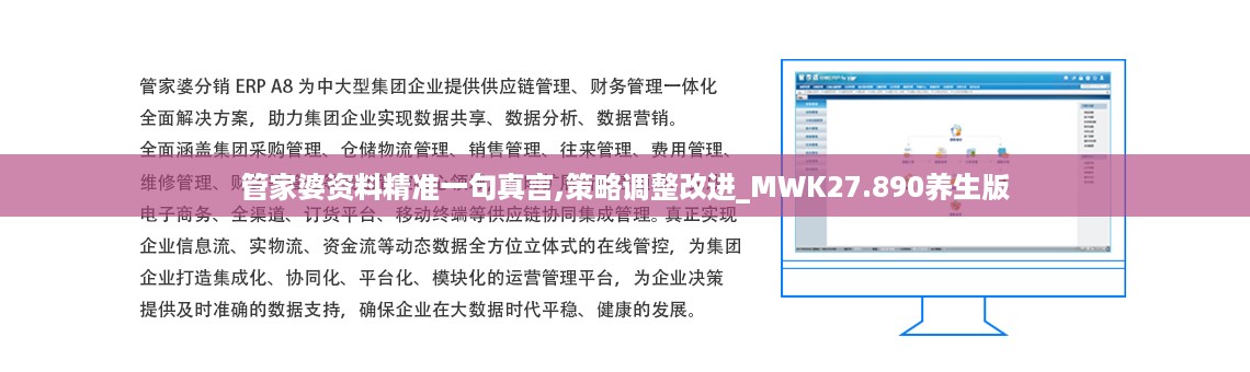在此背景下,“管家婆资料精准一句真言,策略调整改进_MWK27.890养生版”作为一种新兴的管理工具,以其信息精准,功能强大等优势,引起了广泛关注。该工具的推出不仅为企业提供了精准的数据支撑,也为养生行业的可持续发展提供了新的思路。