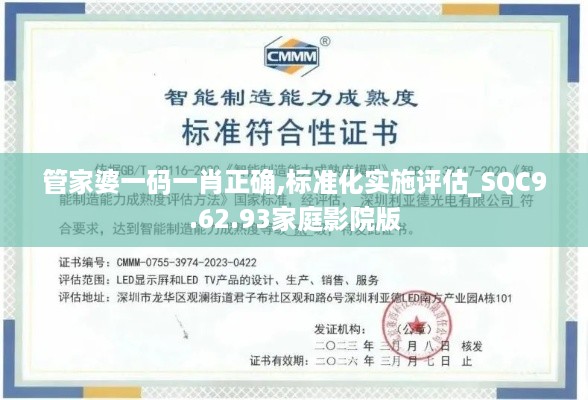 “管家婆一码一肖正确”是基于市场需要和技术创新而提出的一项标准,旨在为消费者提供更可靠的产品和服务。而“标准化实施评估_SQC9.62.93家庭影院版”则是对家庭影院行业标准化实施情况进行有效评估的重要工具。我们希望通过这项工作,能够: