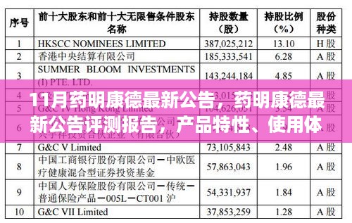 随着医药行业的飞速发展,药明康德作为业内领军企业,其最新公告引起了广泛关注,本文将围绕“药明康德最新公告”展开评测,详细介绍其产品的特性、使用体验、与竞品对比以及目标用户群体分析,以期为行业内外人士提供全面而深入的了解。