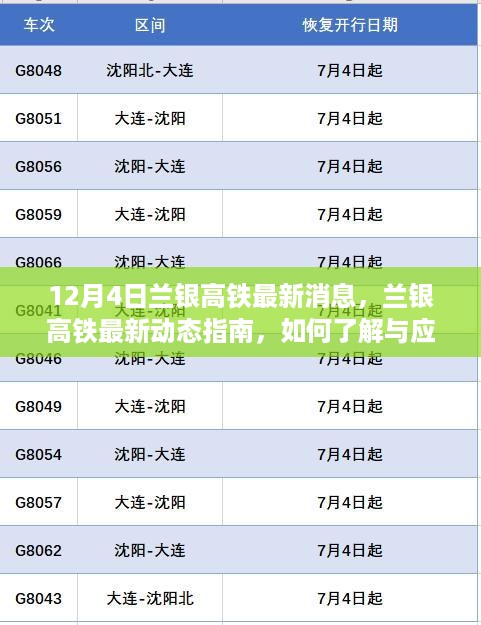 本指南旨在为读者提供关于兰银高铁的最新消息,特别是针对12月4日的最新动态,无论您是初学者还是进阶用户,通过本指南,您将能够轻松获取兰银高铁的最新信息并了解如何应对相关变化。