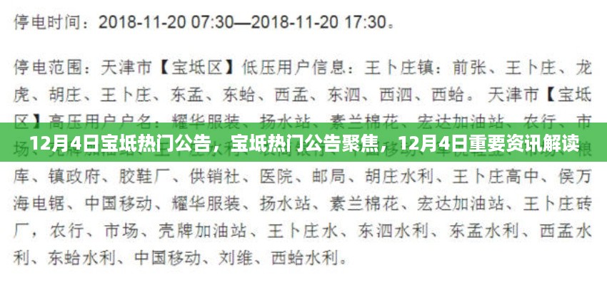 通过以上解读,相信广大市民对12月4日宝坻热门公告有了更加深入的了解,让我们共同期待宝坻区在未来的发展中取得更加辉煌的成果。