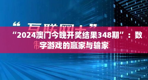 转载请注明来自无忧安证,本文标题:《“2024澳门今晚开奖结果348期”:数字游戏的赢家与输家》