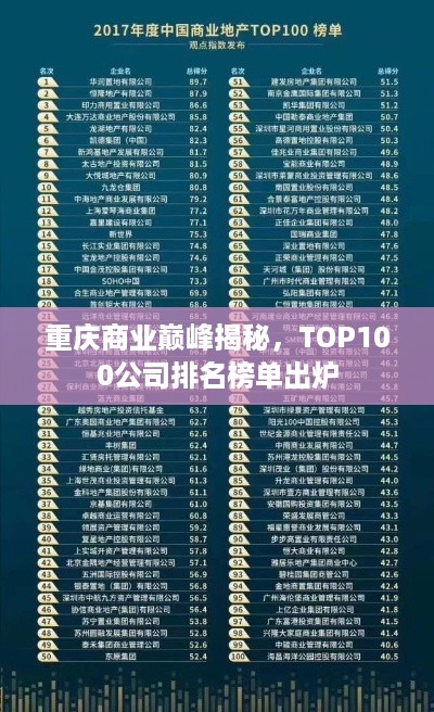 重庆,这座充满活力的山城,不仅是西部大开发的重要节点,也是商业繁荣的象征,随着经济的飞速发展,重庆的公司也如雨后春笋般崭露头角,本文将为您揭晓重庆公司排名TOP100,带您领略重庆商业力量的巅峰。