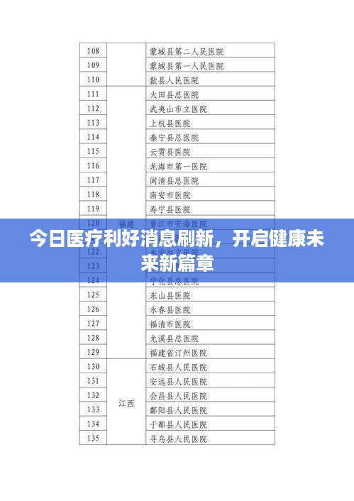 随着科技进步和社会发展,医疗行业日新月异,不断传来令人振奋的利好消息,本文将围绕“今日医疗利好消息最新”这一主题,探讨最新的医疗发展动态及其对人们健康生活的积极影响。
