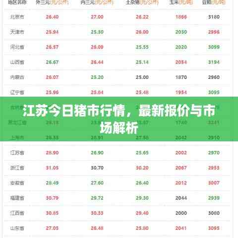 随着国内经济的稳步发展,畜牧业作为重要的农业产业之一,其市场变化备受关注,作为畜牧业大省,江苏省的猪价格动态更是备受瞩目,本文将围绕“江苏今日猪价格最新报价”这一主题,探讨当前市场形势及未来发展趋势。