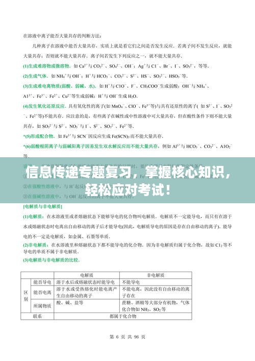在当今信息化社会,信息传递的重要性日益凸显,无论是在学习、工作还是生活中,我们都离不开信息传递,为了更好地掌握信息传递相关知识,本文将围绕信息传递专题进行复习,帮助大家深入理解信息传递的概念、方式、特点以及实际应用。