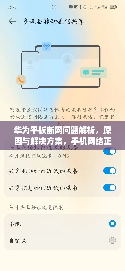 随着科技的飞速发展,移动互联网已成为现代生活中不可或缺的一部分,在这个大背景下,平板电脑以其便携性和功能性赢得了广大用户的青睐,华为作为国内领先的科技企业,其平板电脑在市场上也占有一定的份额,有时用户会遇到一个奇怪的问题:华为平板出现断网现象,而手机却能正常上网,本文将针对这一问题进行深入探讨,并给出相应的解决方案。