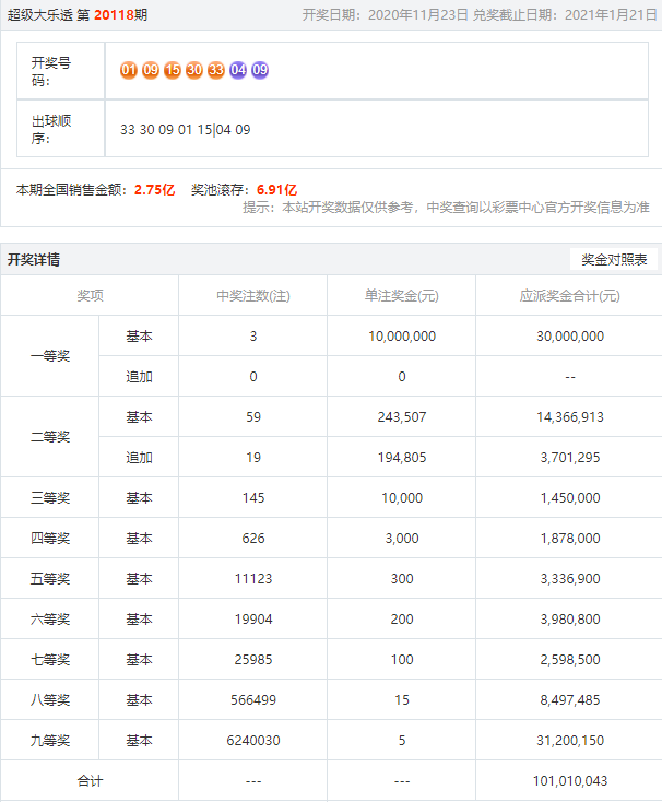 1. 开奖结果:指彩票开奖后产生的中奖号码及对应的中奖情况。